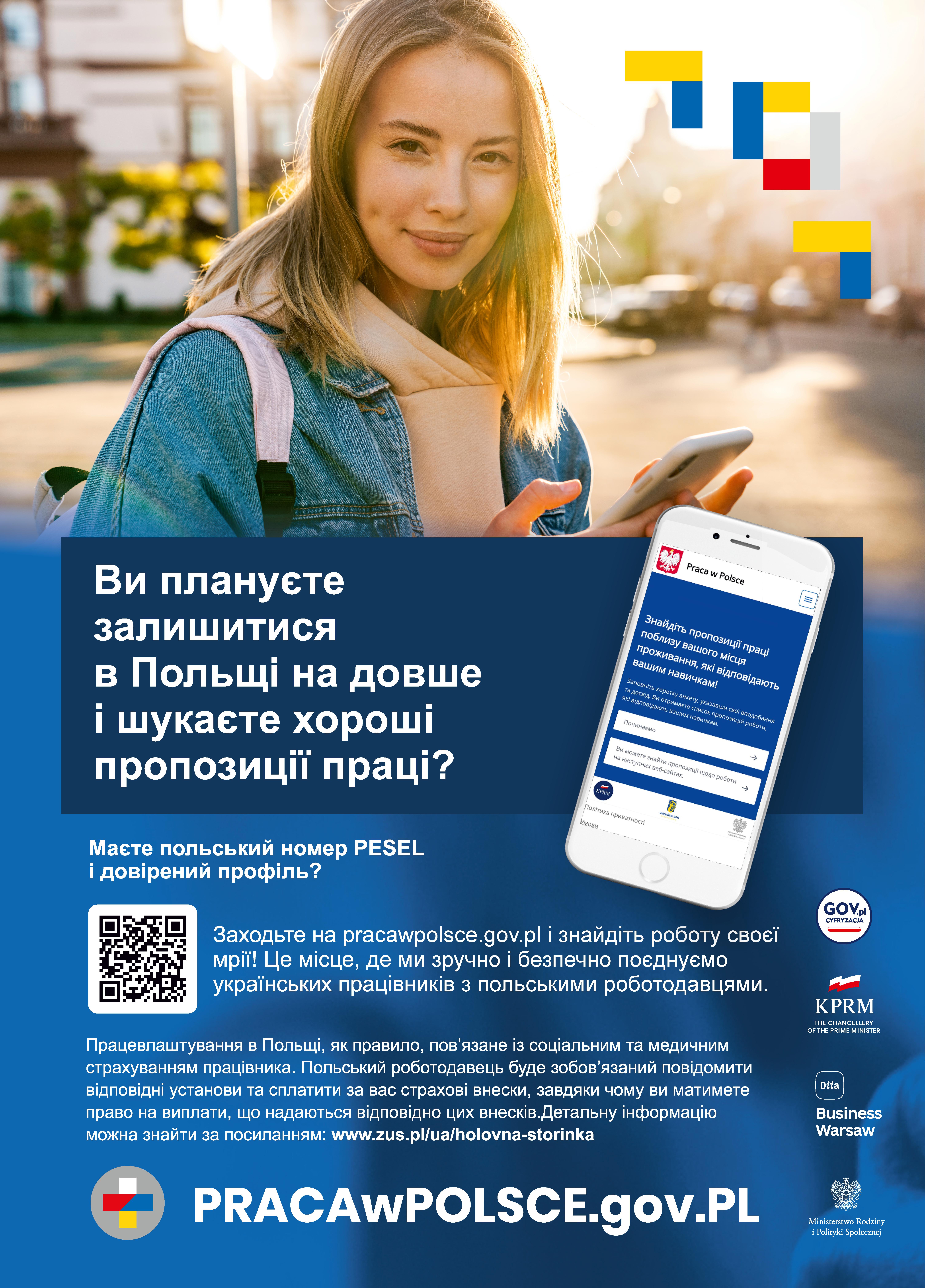 Ministerstwo Rodziny i Polityki Społecznej wspólnie z Kancelarią Prezesa Rady Ministrów stworzyło nową platformę online dla obywteli Ukrainy poszukujących pracy - pracawpolsce.gov.pl