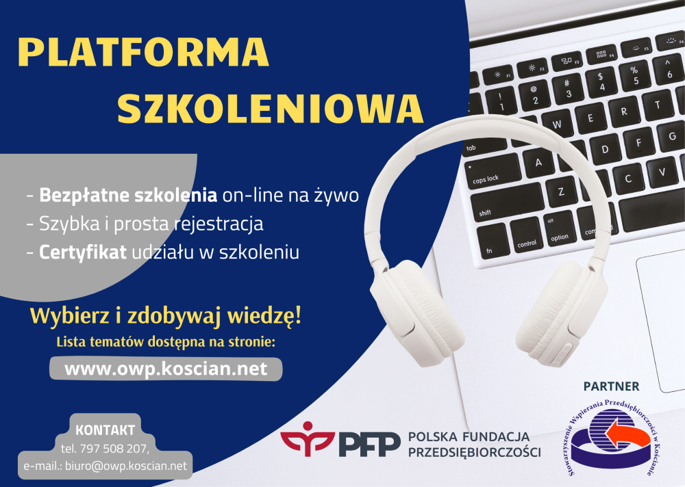 Październik to doskonały moment, by nabrać rozpędu na ostatnie miesiące roku i postawić na rozwój, który realnie przekłada się na efekty, dlatego wszystkich zainteresowanych poszerzaniem kwalifikacji, rozwojem osobistym i zawodowym Stowarzyszenie Wspierania Przedsiębiorczości w Kościanie zachęca do korzystania z bezpłatnych szkoleń online organizowanych przez Polską Fundację Przedsiębiorczości.