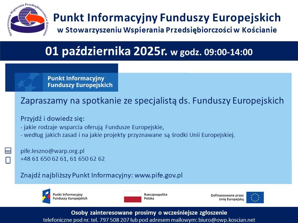 01.10.2025 Punkt Informacyjny Funduszy Europejskich (wyjątkowo w środę)